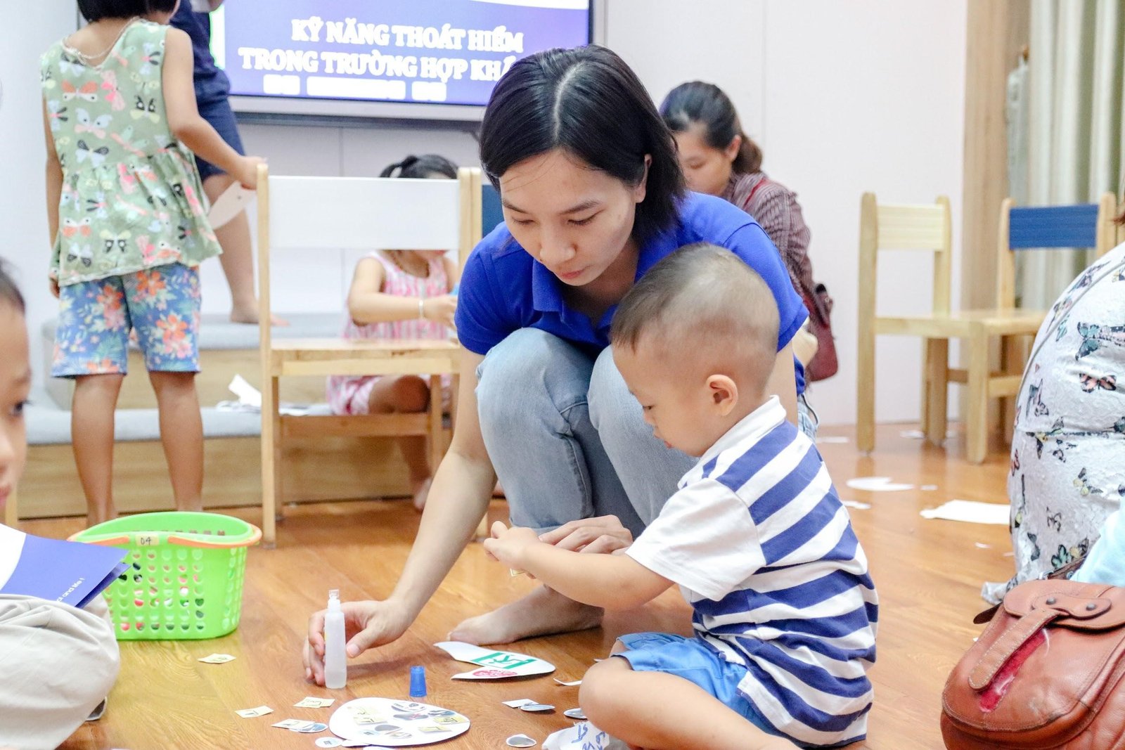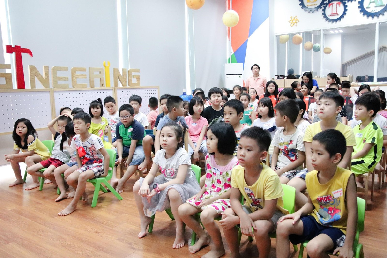 Thông qua các trò chơi và các hoạt động STEM vô cùng thú vị, các bạn nhỏ còn được học cách sáng tạo và cùng nhau thuyết trình về sản phẩm spin wheel (vòng tròn SOS) để phát thông điệp cần giúp đỡ trong các tình huống nguy hiểm.
