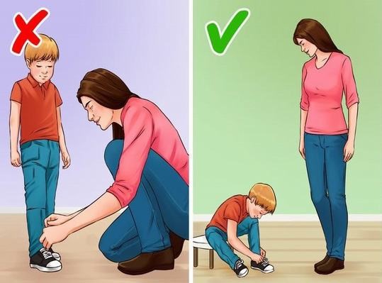 Nếu muốn con mình tốt hơn, các bậc cha mẹ hãy đừng làm hộ mọi thứ cho chúng. Trẻ con cần phải học cách tự mặc quần áo, thắt dây giày và soạn cặp vở để đến trường.