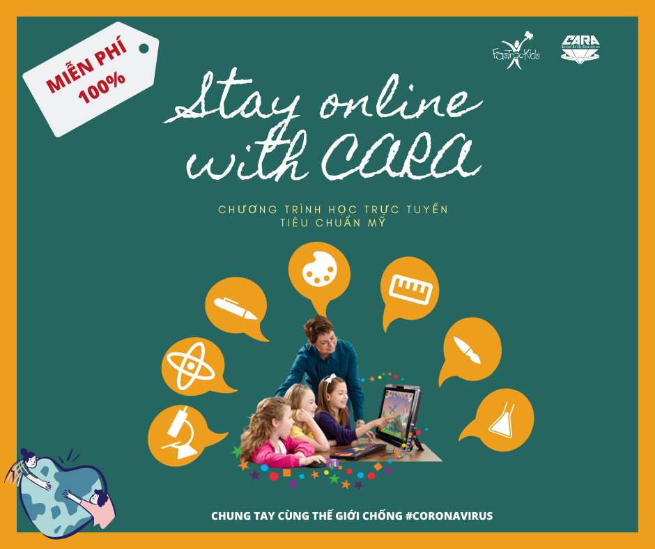 Khóa học online của Cara theo tiêu chuẩn Hoa Kỳ hoàn toàn miễn phí dành cho học sinh từ 5-10 tuổi. Lớp học hoàn toàn chủ động về thời gian, giúp các con có lựa chọn thời gian học tập phù hợp nhất để không trùng với các môn học chính khóa. Các bài học bằng video dễ dàng có thể xem lại, giúp các con ghi nhớ và hiểu bài hơn. Các con có thể học ở bất cứ đâu cảm thấy thoải mái nhất cho việc học tập, giúp tiếp thu kiến thức một cách tốt nhất. Mọi vấn đề mà học sinh của họ không hiểu, học sinh sẽ liên hệ với giáo viên qua Email, Facebook, Skype,… các phương tiện liên lạc trực tuyến để được giải đáp, trả lời các thắc mắc trong quá trình học tập.