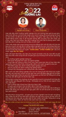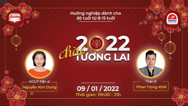 Thấu hiểu được tầm quan trọng cũng như đồng cảm với nỗi trăn trở của các bậc phụ huynh về việc định hướng nghề nghiệp cho con, Hệ thống Giáo dục Kỹ năng sống Cara kết hợp với Học viện Anh ngữ Quốc tế Sydney Academy tổ chức buổi Hội thảo trực tuyến: “CHÀO 2022 – CHÀO TƯƠNG LAI” vào Chủ nhật, ngày 09/01/2022.