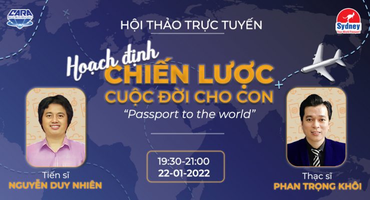 Thấu hiểu được tầm quan trọng cũng như đồng cảm với nỗi trăn trở của các bậc phụ huynh về việc định hướng nghề nghiệp cho con, Hệ thống Giáo dục Kỹ năng sống Cara kết hợp với Học viện Anh ngữ Quốc tế Sydney Academy tổ chức buổi Hội thảo trực tuyến: “HOẠCH ĐỊNH CHIẾN LƯỢC CUỘC ĐỜI CHO CON Passport to the world” vào Thứ bảy, ngày 22/01/2022.
