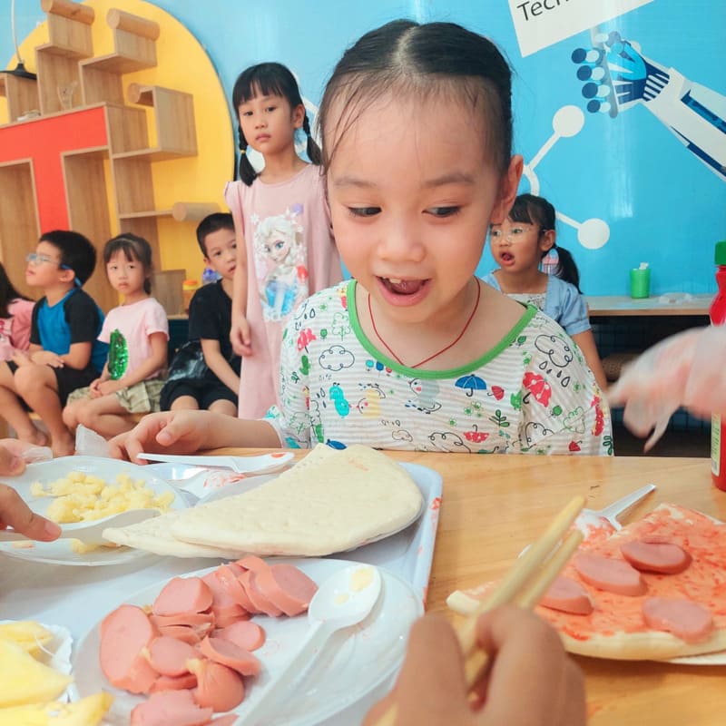 Không chỉ dừng lại ở các công trình kiến trúc vĩ đại, các con cũng sẽ được thử chế tạo một trong những dụng cụ mang tính bước ngoặt của ngành Y tế – Ống nghe nhịp tim mạch. Cuối cùng, kết thúc chương trình STEAM của tuần sẽ là tiết học thực hành làm món ăn nổi tiếng châu Âu vốn đã quen thuộc với tất cả chúng ta – Bánh Pizza. Buổi học được các con vô cùng yêu thích và tràn ngập tiếng cười khi tự mình trải nghiệm quy trình tạo ra món ăn quen thuộc