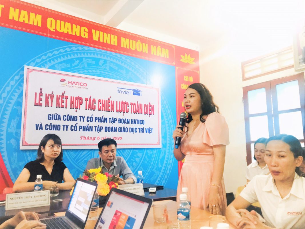 Cũng tại lễ ký kết, Bà Dương Hải Hưng – Cố vấn cấp cao của Trí Việt, Ông Đào Đức Việt – phó TGĐ và ông Hà Phúc Hoàn – GĐ công nghệ của Công ty cổ phần tập đoàn giáo dục Trí Việt đã có những lời phát biểu và giới thiệu về sản phẩm cốt lõi của Trí Việt cũng như tại sao lại có mối lương duyên giữa Hatico và Trí Việt. Cán bộ nhân viên của Hatico đã lắng nghe với sự tiếp thu và hào hứng với sự độc đáo cũng như chuyên nghiệp của chương trình