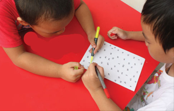Trên tờ giấy a4 viết các con số từ 1 đến 50 không theo trật tự nào cả. Hai người chơi dung bút có màu khác nhau thi khoanh số bắt đầu từ 1. Bạn nào khoanh được nhiều số hơn thì bạn đó giành chiến thắng.