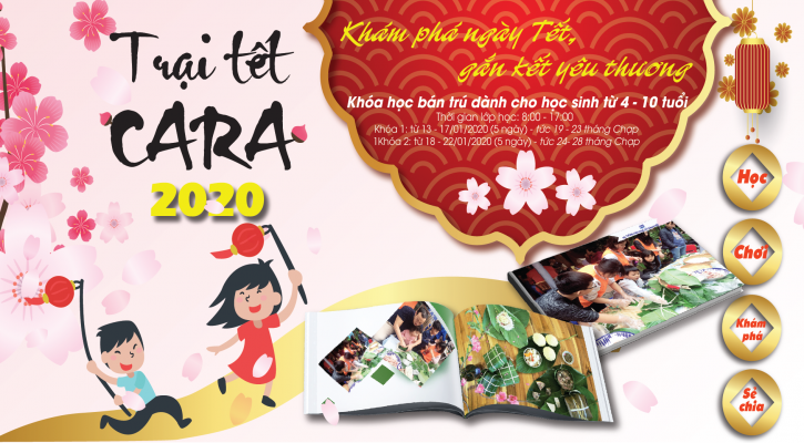 Hệ thống giáo dục kỹ năng sống Cara thông báo tổ chức Trại Tết Cara 2019 dành cho học sinh 4-9 tuổi từ ngày 28/01/2019 đến ngày 01/02/2019. Với thông điệp “Khám phá ngày Tết, gắn kết yêu thương”, trại Tết Cara 2019 hứa hẹn...
